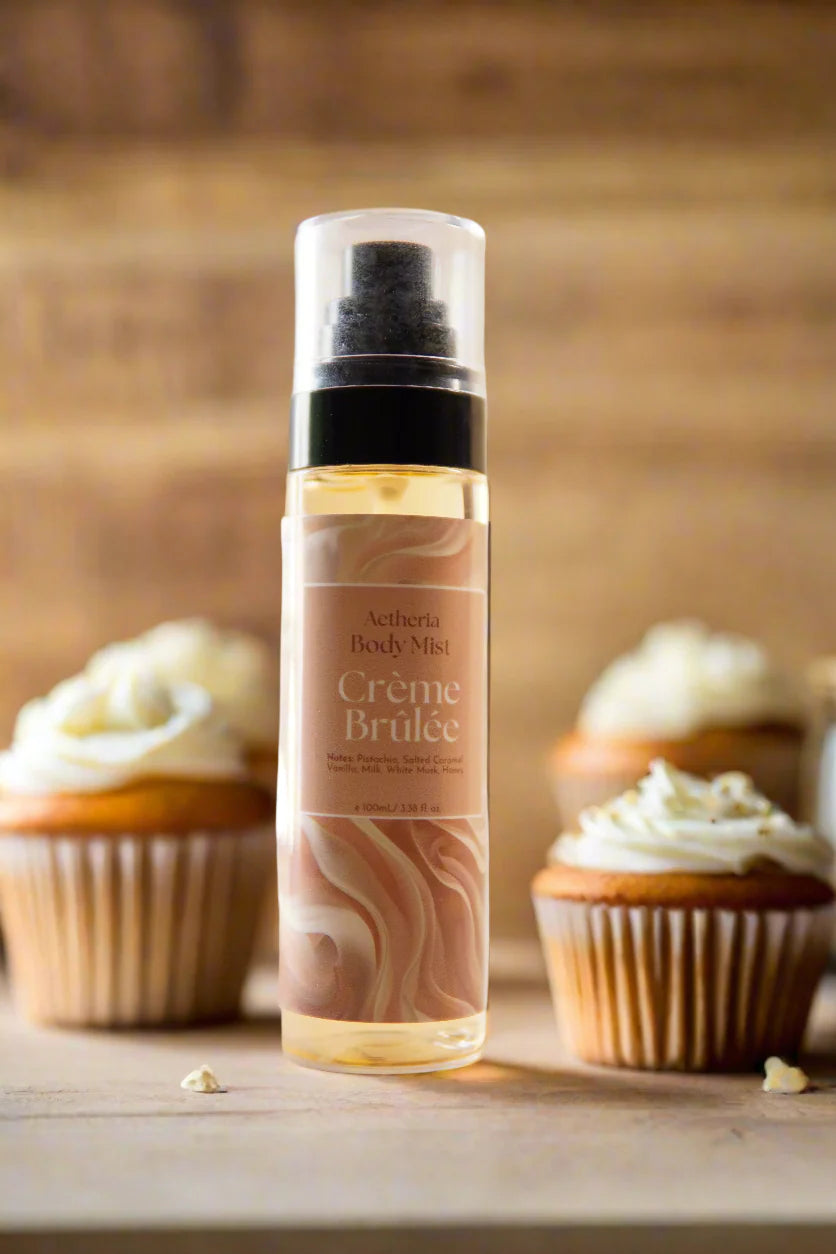 Crème Brûlée ( Creme Brulee ) Body Mist is a rich, indulgent scent that feels like a warm, sweet hug. A dreamy blend of caramelized vanilla, creamy coconut, and nutty praline creates an irresistible gourmand fragrance—perfect for those who love a cozy and delicious scent.Longevity upto 4hrs.