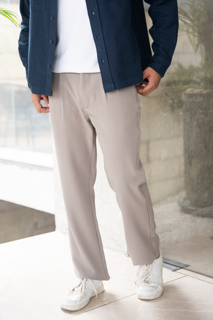 Pleated Straight Leg Pants For Men - Ash - Loose Fit